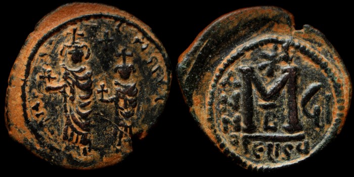 Antioche ou Théopolis, la ville ayant été renommée à sa reconstruction par Justinien suite au tremblement de terre de 528, cet atelier est opérationnel entre 512 et 610, cet atelier romain fut réouvert par Anastase et fut fermé suite à la prise de la ville par les Perses à la fin du règne de Phocas. A noter qu'il existe des monnaies d'Héraclius avec la marque cet atelier, Theup, ces monnaies ont probablement été émisent sous administration Perses.